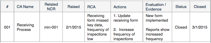 The form below is an example of what a corrective action report may look like: